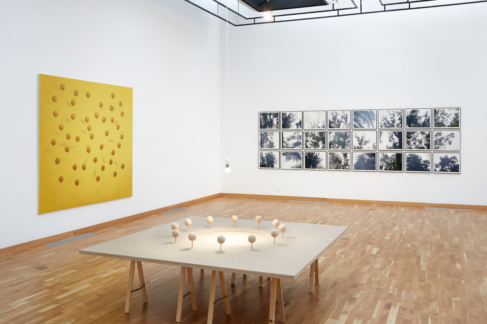 In 1918, Marcel Duchamp decided to photograph the shadows cast by three of his works which he had hung from the ceiling of his New York studio: Sculpture de voyage (Sculpture for Travelling) and two ready-mades, Roue de bicyclette and Porte-chapeaux (Bicycle Wheel and Hat Rack). Sigurðsson’s lamps, following the example of the readymades photographed by Duchamp, are also suspended in the air. Of course, they resemble the Porte-chapeaux, particularly in the case of Retina I. We know that Duchamp would not limit himself to photographing the shadows of the Bicycle Wheel and Hat Rack. He also painted them in a picture, the same year as the photograph, with which he intended to definitively take leave of painting: Tu m’. But what was supposed to affirm the end of painting left a lasting impression on the retinas of painters.